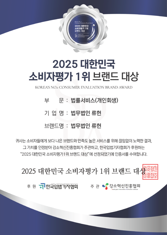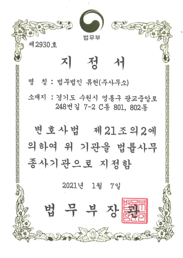 법무법인 류헌  ㅣ  대표변호사 : 이재도  ㅣ  광고책임변호사 : 이재도  ㅣ  사업자등록번호 : 363-81-02102